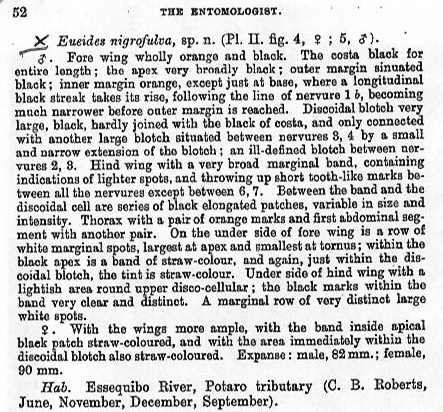 STICHEL, H. (1906) "Lepidoptera Rhopalocera. Fam. Nymphalidae. Subfam. Heliconiinae". Genera Insectorum 37: 1-74 KAYE, W. (1906) "New species of Guiana and Jamaican butterflies". Entomologist 39(514): 49-53 Lire description BRIK, F. (1953) "Lepidoptera aus dem Amazonasgebiete und aus Peru gesammelt von Dr. Douglas Melin und Dr. Abraham Roman". Arkiv för Zoologi (N.S.) 5(1): 1-268 GERNAAT, H. & BECKLES, B. (2010) "A new subspecies of Eueides lampeto Bates, 1862 (Nymphalidae: Heliconiinae) from Suriname". Journal of the Lepidopterists' Society 64(3): 172-174 Lire