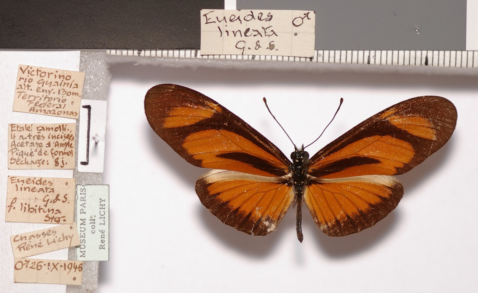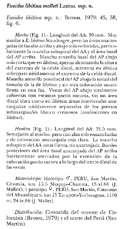 LAMAS, G. (1998) "Comentarios taxonómicos y nomenclaturales sobre Heliconiini neotropicales, con designación de lectotipos y descripción de cuatro subespecies nuevas (Lepidoptera: Nymphalidae: Heliconiinae)". Revista peruana de Entomología 40: 111-125 Lire description