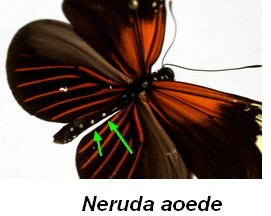 L'abdomen de H. aoede présente des points jaunes latéraux bien visibles alors qu'aucune marque n'est visible sur l'abdomen de erato et melpomene. |