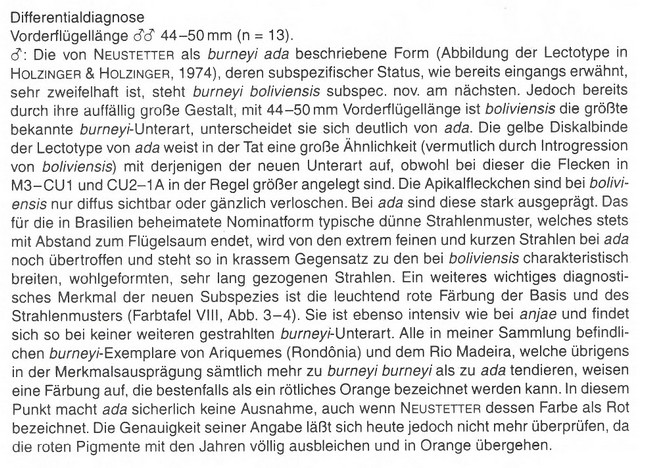 Bolivie LT: Bolivia, Cochabamba, Rio Chapare, 500-800m NEUKIRCHEN, W. (1995) "Vier neue Unterarten von Heliconius burneyi (Hübner, 1816) (Lepidoptera: Nymphalidae)". Atalanta 26(1/2): 201-208 Lire description + PDF