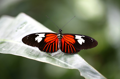 La forme de ses ailes et leur dessin la rend facilement reconnaissable. Passiflora coccinea, quadrangulosa et vitifolia