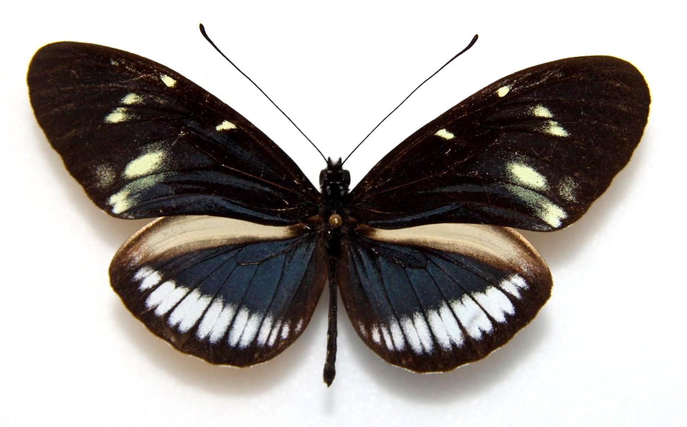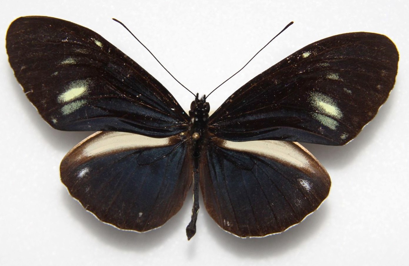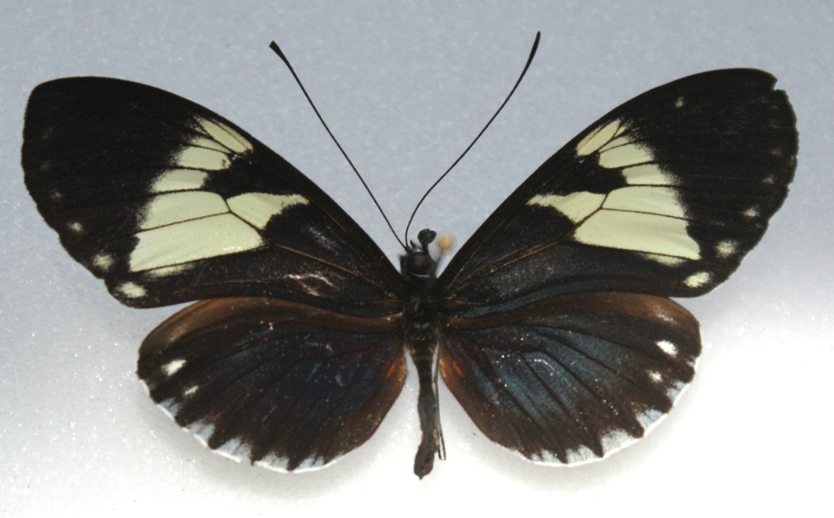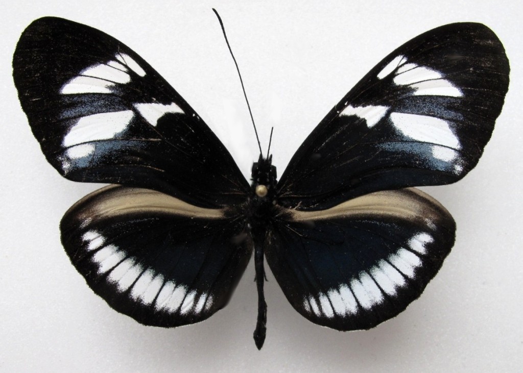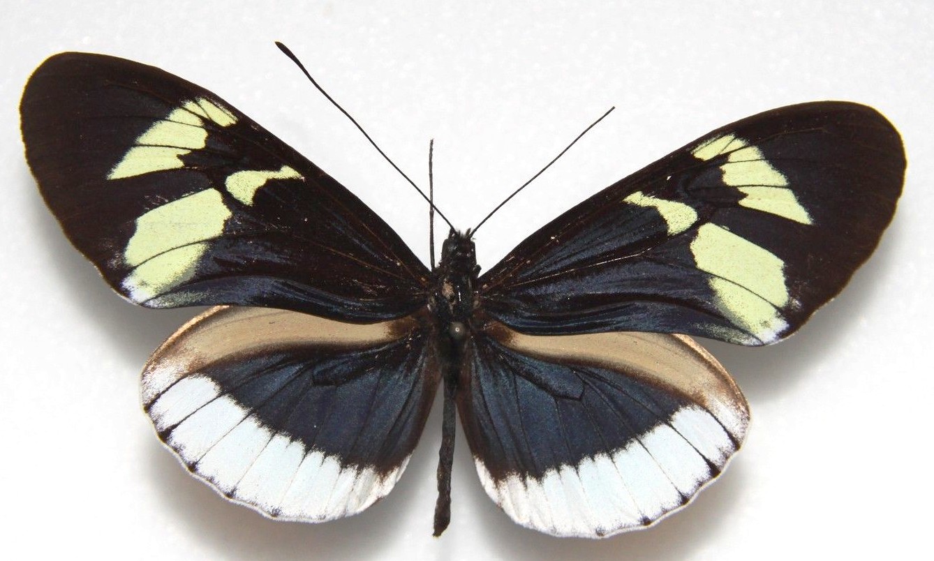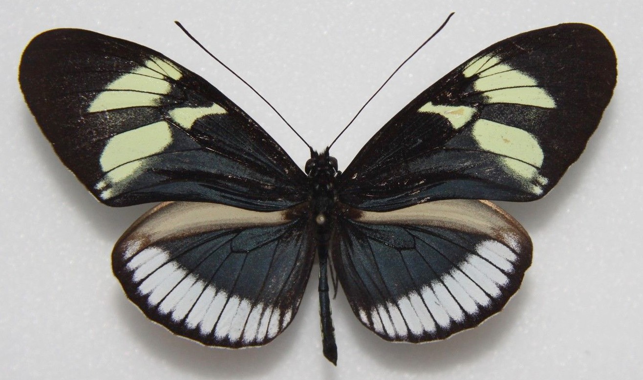 Décrite de Colombie (Cauca, Rio Dagua). La bande marginale blanche aux postérieures est très large et touche le bord.