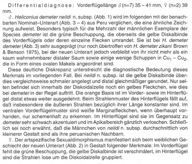 Funet: demeter neildi Neukirchen, 1997; , TL: Ecuador, Napo, El Capricho 850m Equateur (Napo) NEUKIRCHEN, W. (1997) "Heliconius demeter neildi n. subsp. aus Ost-Ecuador (Lepidoptera: Nymphalidae"