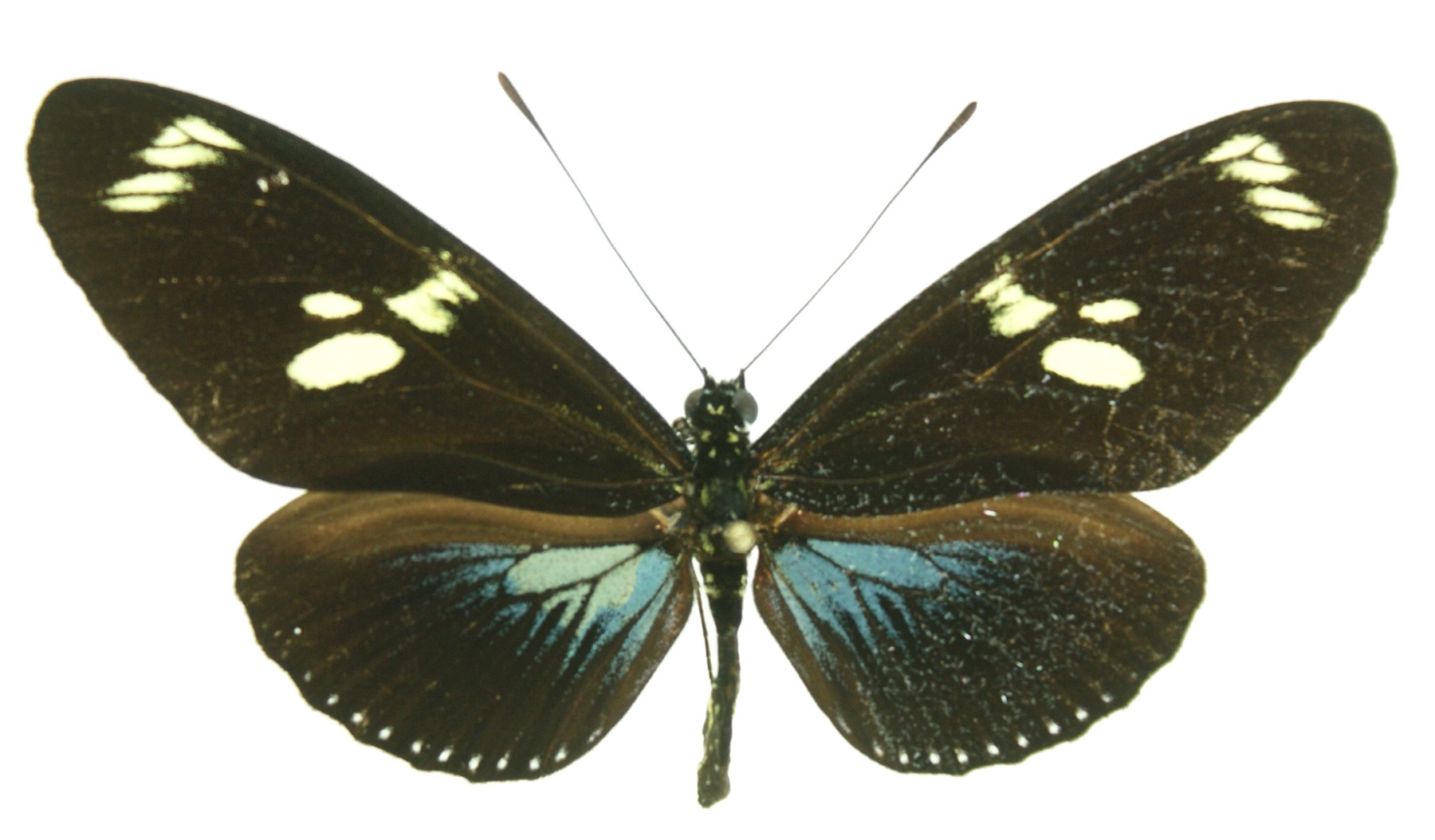 Postérieures tâchées de bleu, les rayons bleus bifurquant vers le