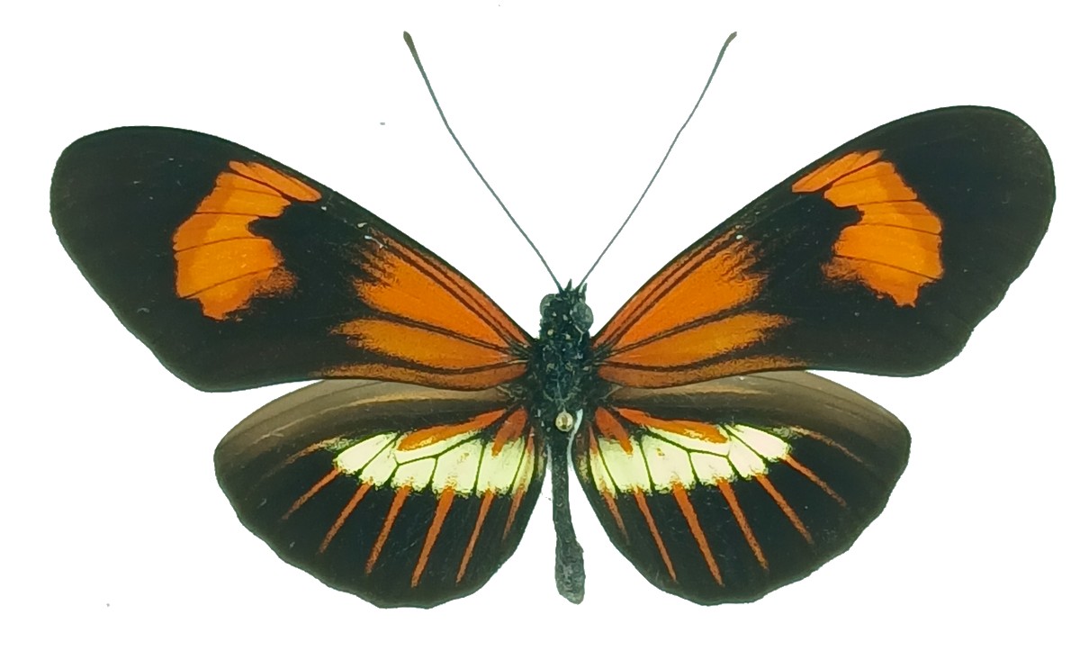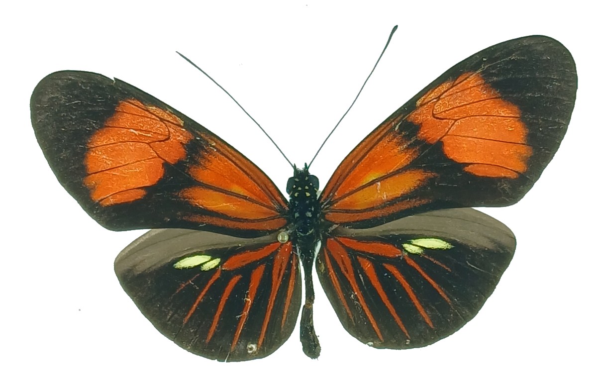 La tache blanche est remplacée par les marques écarlates de microlea. Cette forme est très proche de la de f. integra de H. melpomene xenoclea.