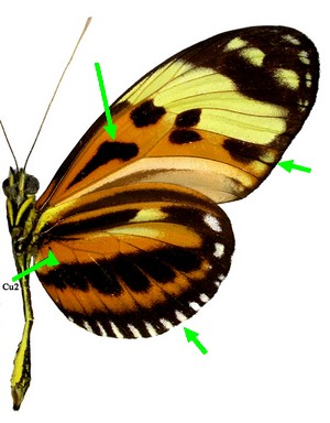Pour la nomenclature propre au dessins alaires des heliconius sylvaniformes, se référer au dessin des ailes. Passiflora actinia, alata, amethystine,
