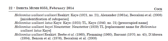 NEUSTETTER, H. (1929) "Nymphalidae: Subfam. Heliconiinae". Lepidopterorum Catalogus 36: 1-136 COCK, M. (2014) "An updated and annotated checklist of the larger butterflies (Papilionoidea) of Trinidad, West Indies: Papilionidae, Pieridae and Nymphalidae". Insecta Mundi 353: 1-41 Lire note