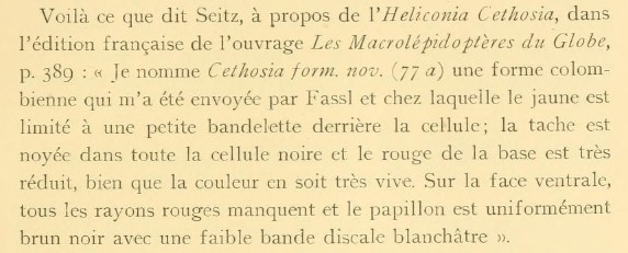 SEITZ, A. (1912) "Unterfamilie: Heliconiinae. In: Die Gross-Schmetterlinge der Erde". Stuttgart, Alfred Kernen. 5: 375-402 Lire description NEUSTETTER, H. (1912) "Neue Heliconius". Fauna exotica 1(14): 54-55 KAYE, W. (1920) "New species and sub-species of South American Lepidoptera". Entomologist's Record and Journal of Variation 32(10): 187-189 Lire PDF OBERTHÜR, C. (1920) "Explication des planches coloriées. Études de Lépidoptérologie comparée" 17(2): 5-38, pls. 502-522 Lire PDF + planche